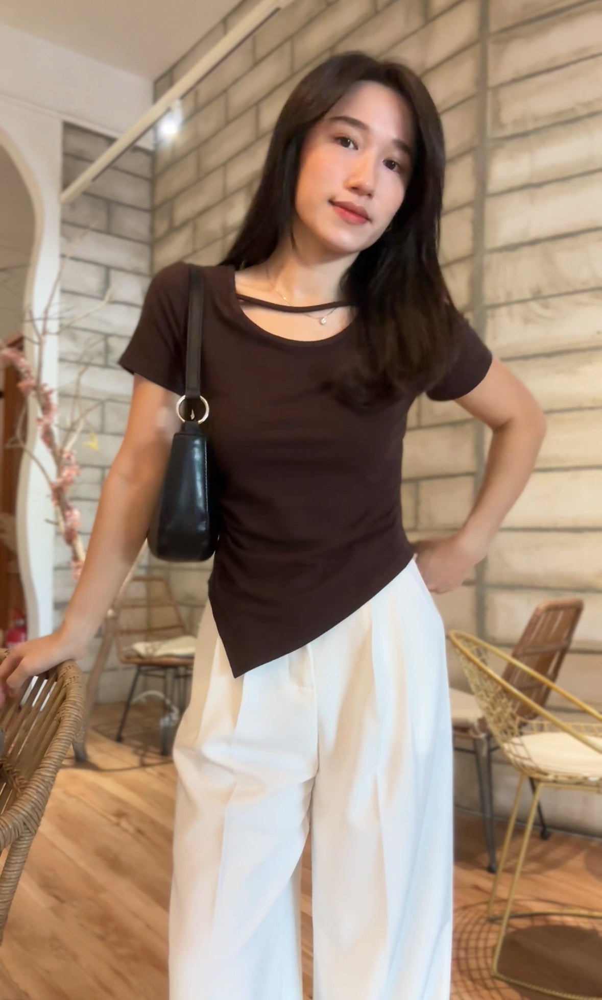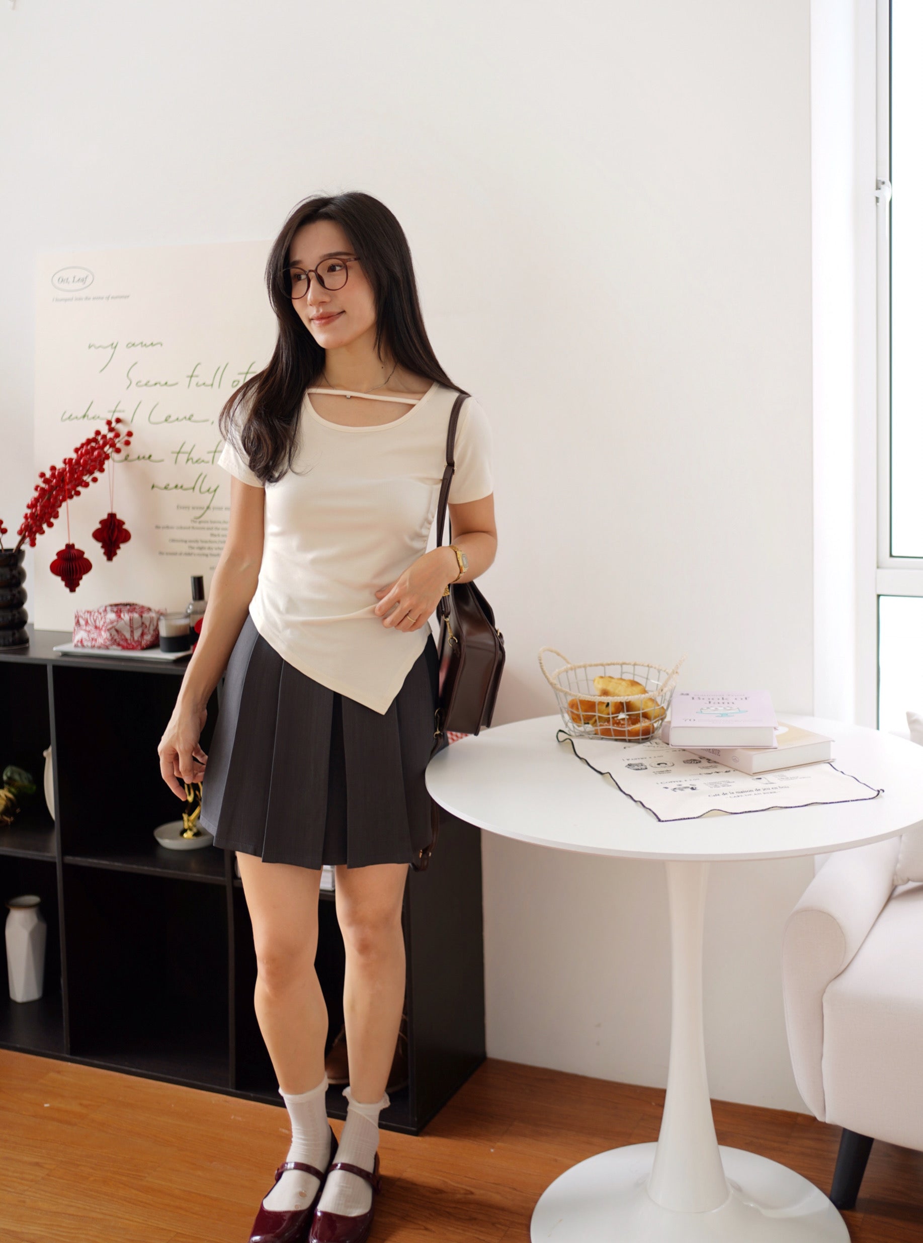 Cute meets daring in this modern white cut-out top. Designed with subtle neckline details that elevate a classic tee, it hugs the body just right for a flattering, youthful vibe. Easy to style and irresistibly fresh, this top is perfect for casual days when you still want to look polished and trendy.