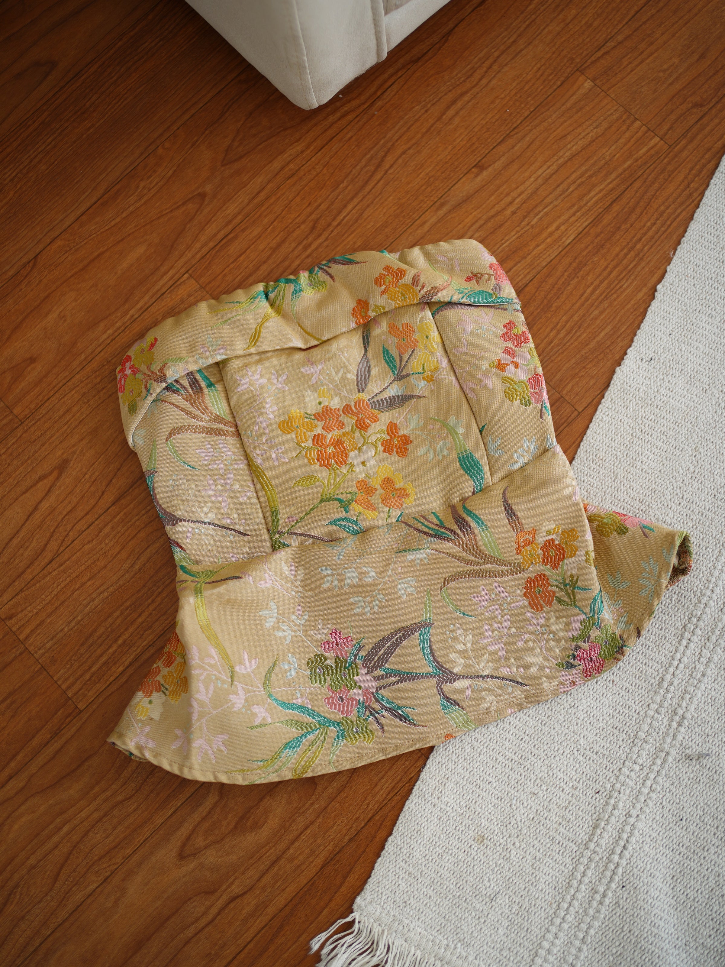 Turn heads effortlessly with this oriental floral tube top! Designed with a structured bodice and a subtle peplum flare, it cinches your waist beautifully while showing off a sweet, feminine silhouette. The luxe brocade fabric and pastel florals add a dreamy, elegant touch—perfect for dates, brunch, or any moment you want to feel chic and a little daring. A must-have statement piece for your wardrobe! 💛🌸