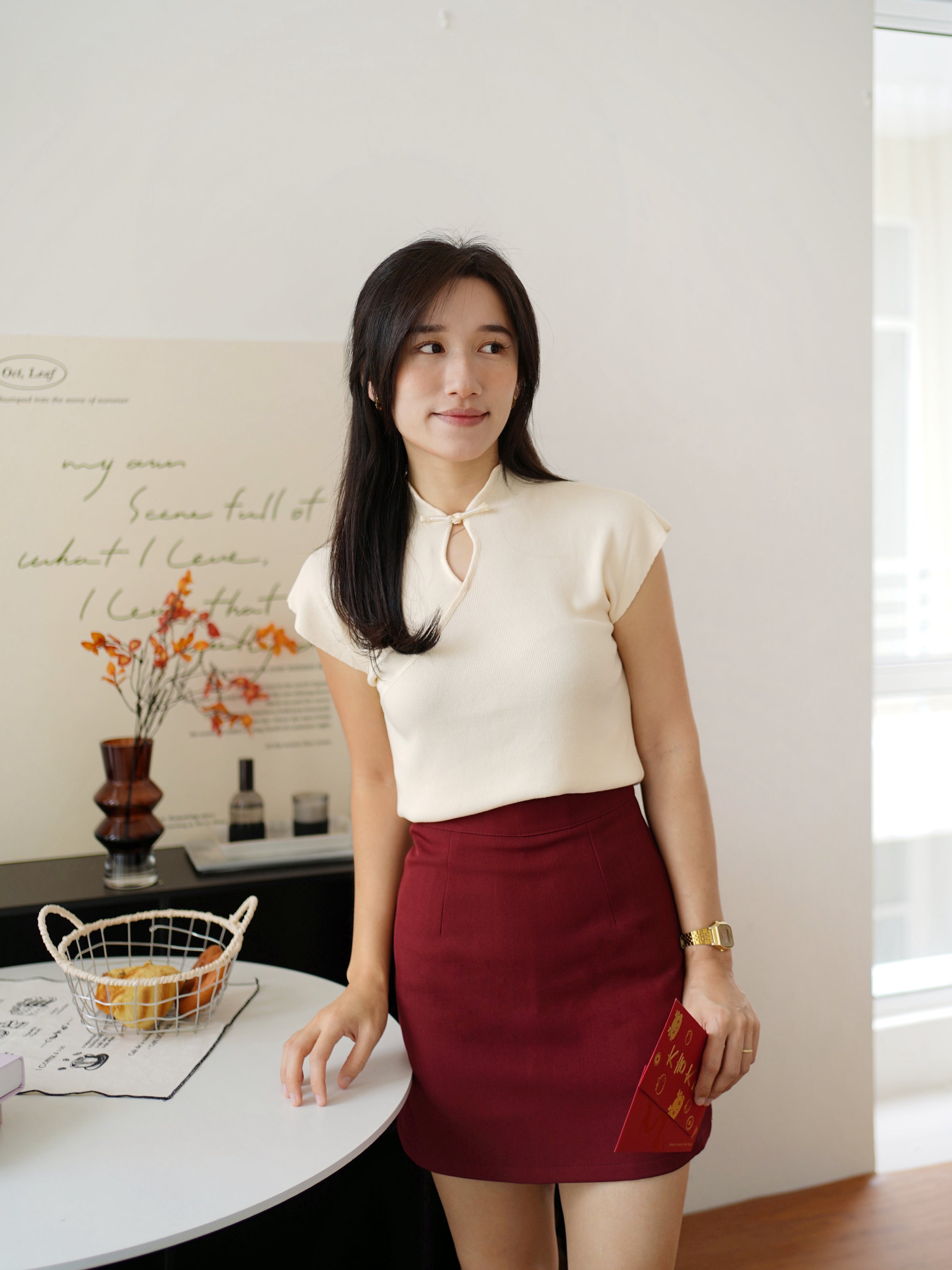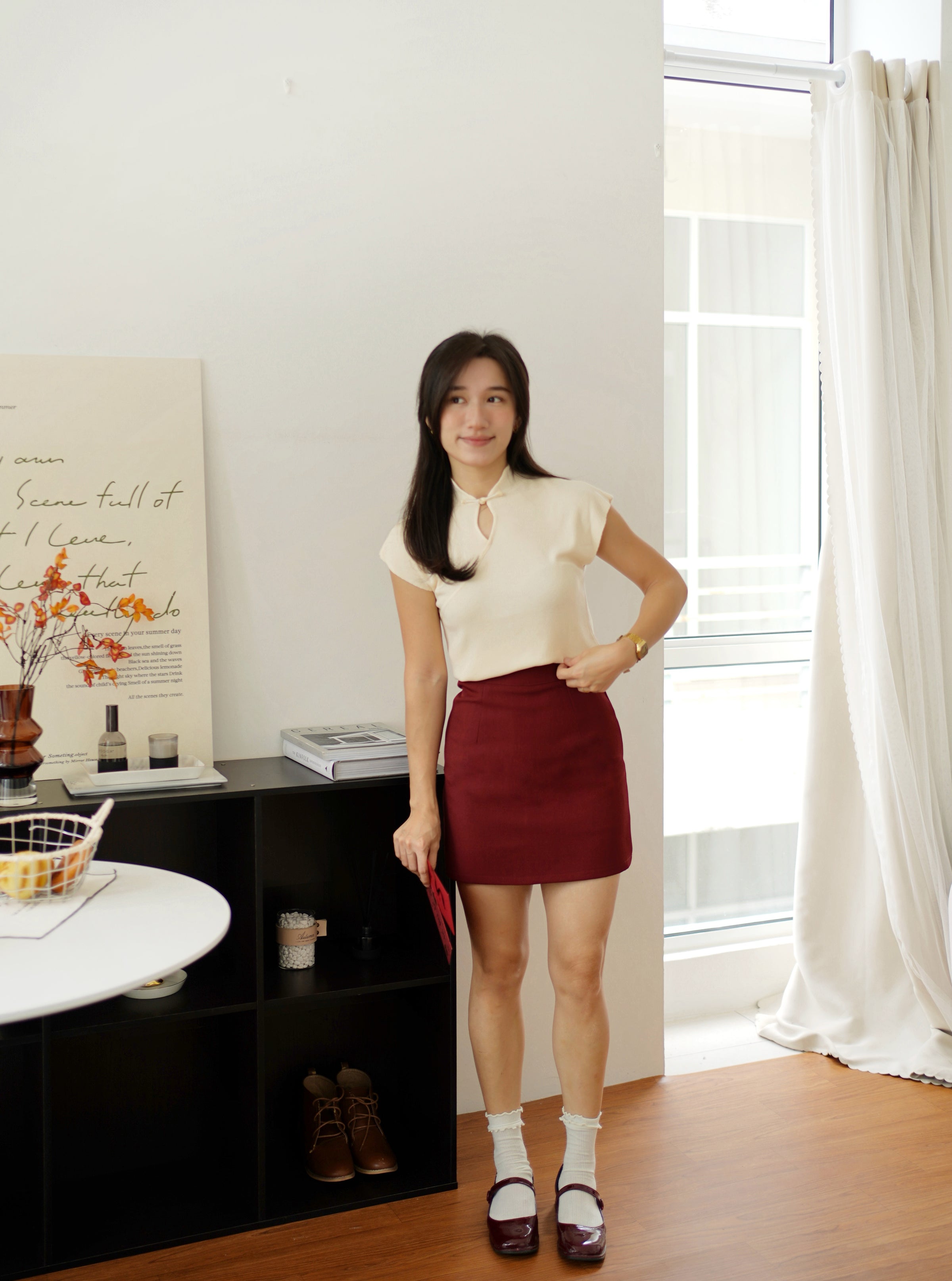 Elevate your wardrobe with this chic maroon mini skirt. Designed with a flattering high-waisted fit, this skirt showcases a clean, structured silhouette perfect for both casual and semi-formal occasions. Crafted from premium fabric, it offers a comfortable yet tailored look. Pair it effortlessly with blouses, crop tops, or halter tops for a versatile styling option. The bold red color adds a pop of vibrance, making it a standout piece for festive seasons, dinner dates, or office attire. Complete the look with heels or flats for a polished ensemble.