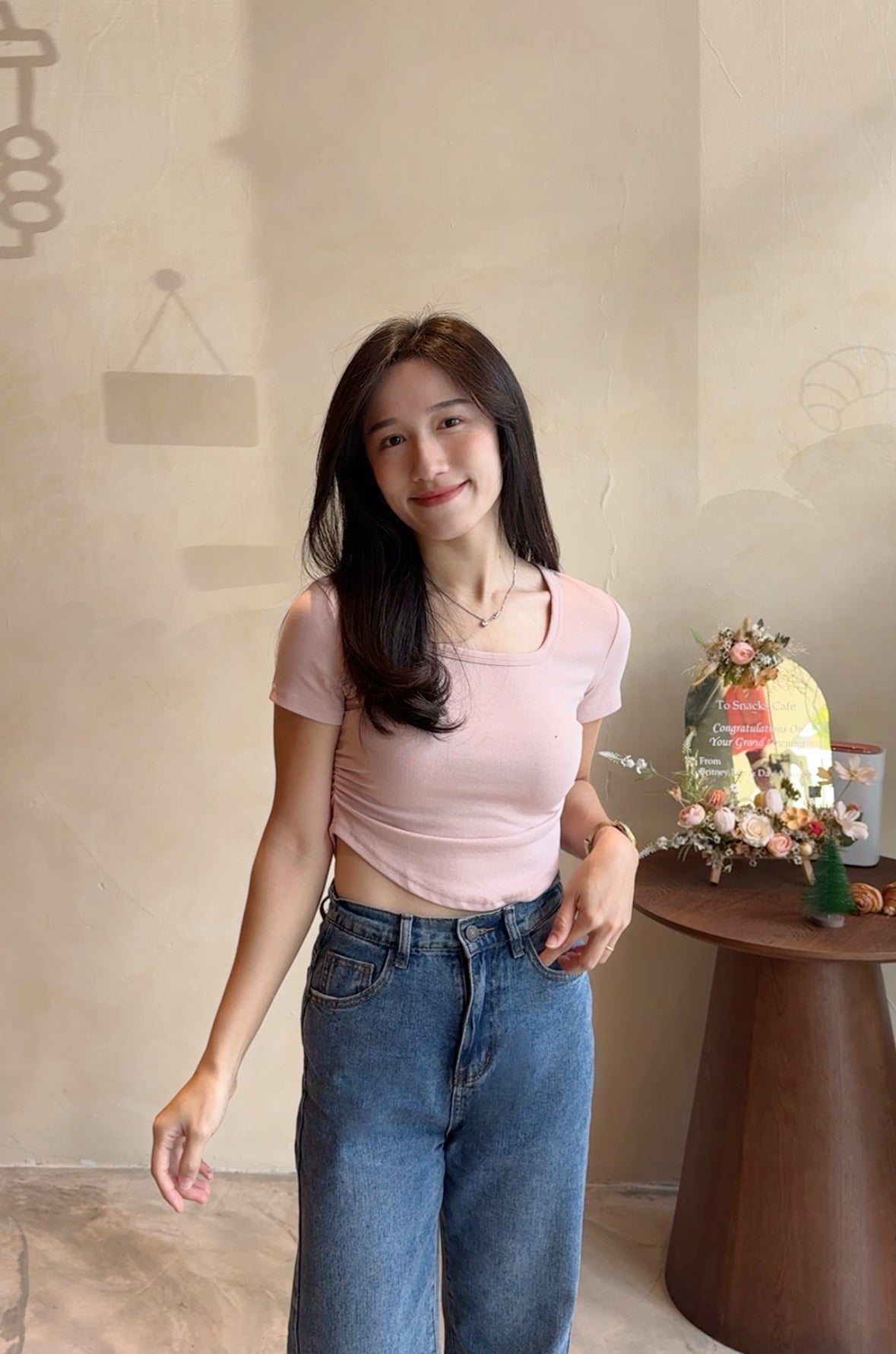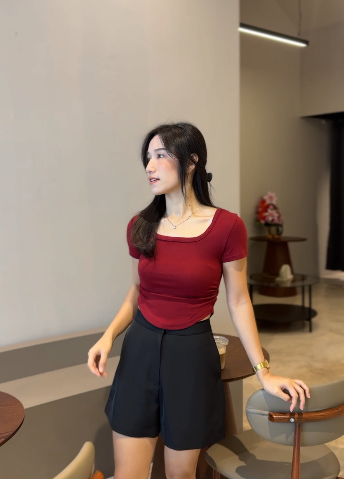 A must-have everyday top crafted from soft, stretchy fabric for a smooth, flattering fit. Featuring a classic scoop neckline and short sleeves, this versatile tee hugs the body comfortably and layers effortlessly. Perfect for casual wear, work-from-home looks, or styling up with skirts and trousers—your go-to basic in timeless, easy-to-match colors.