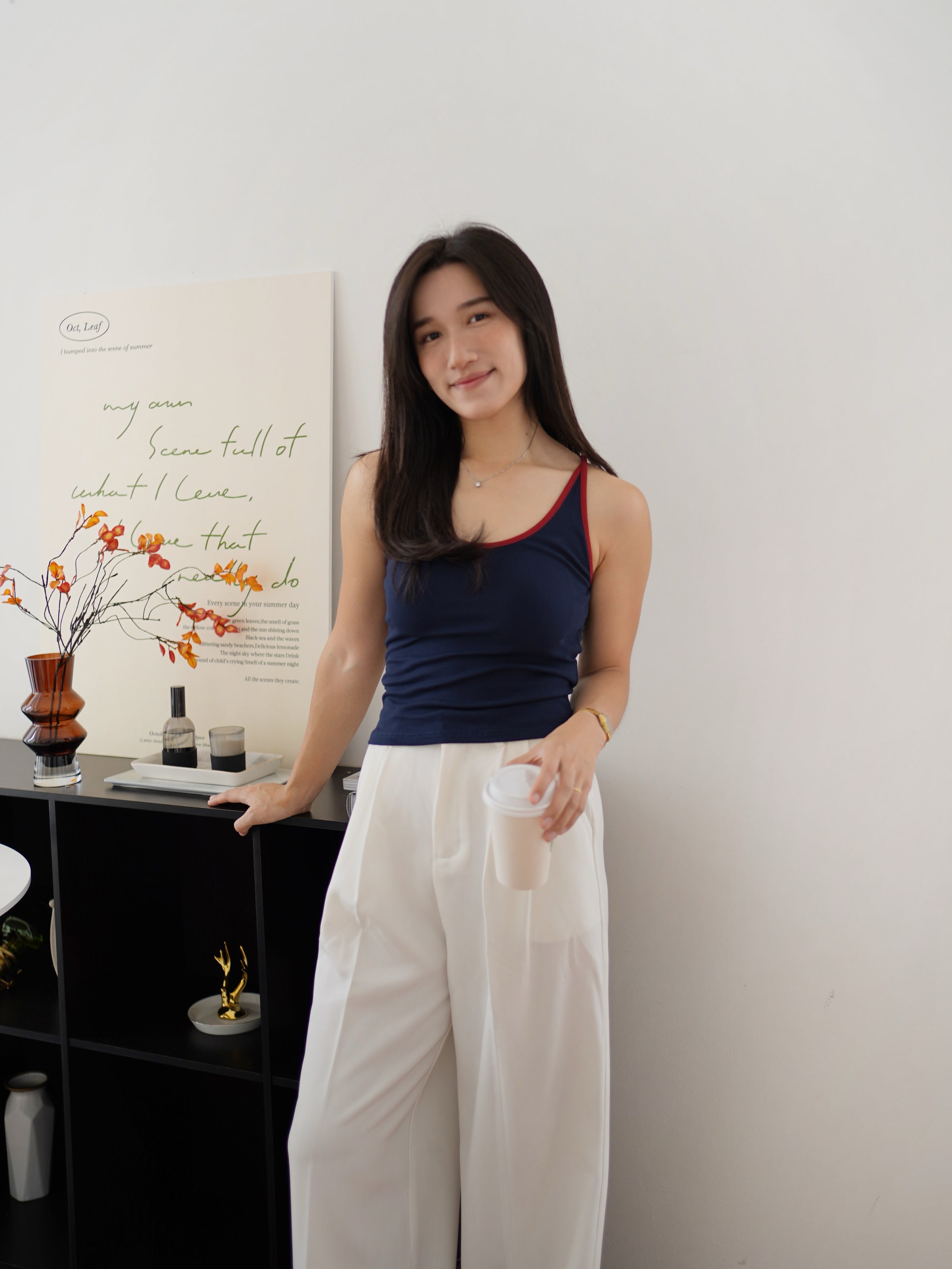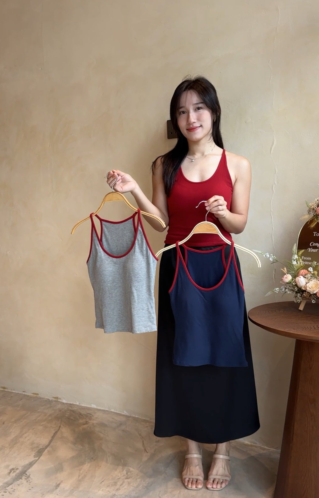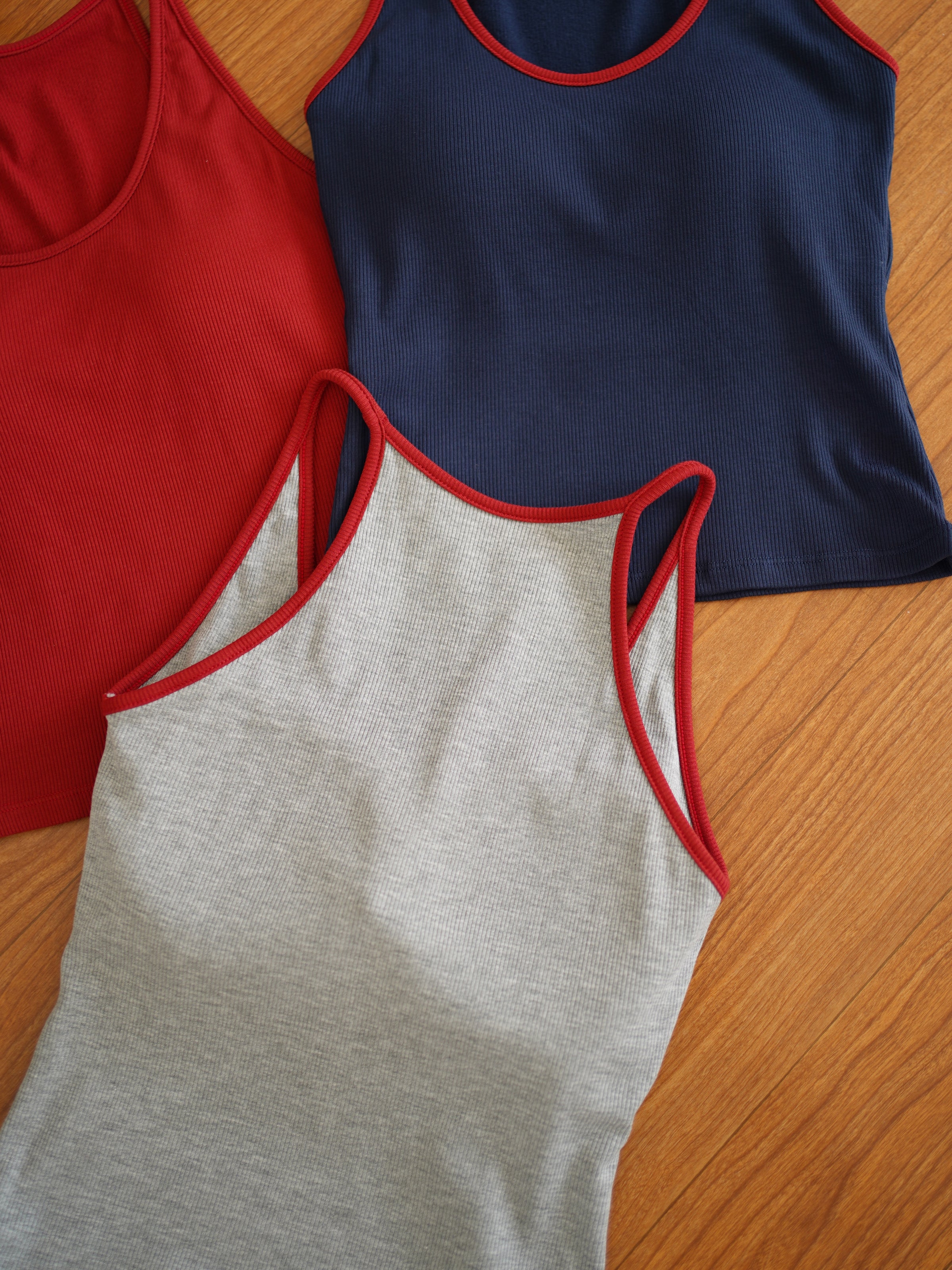 Turn heads with this contrast-trim racer tank — a comfy, stretchy essential that hugs your shape just right. Its bold neckline adds a flirty pop of color, making even the simplest outfit look effortlessly stylish. Perfect for casual days, cute dates, or layering up — this top is your new wear-on-repeat fave.