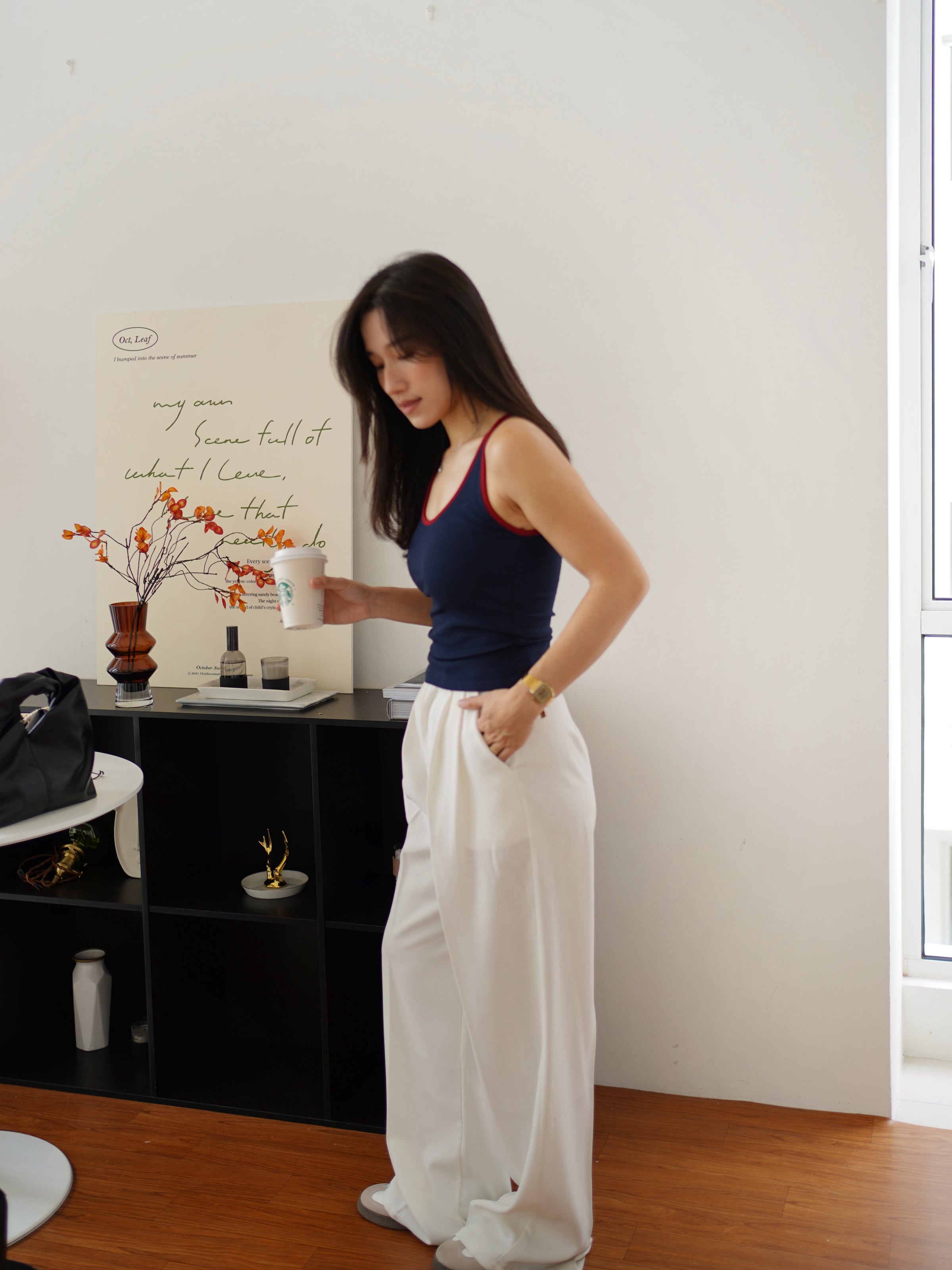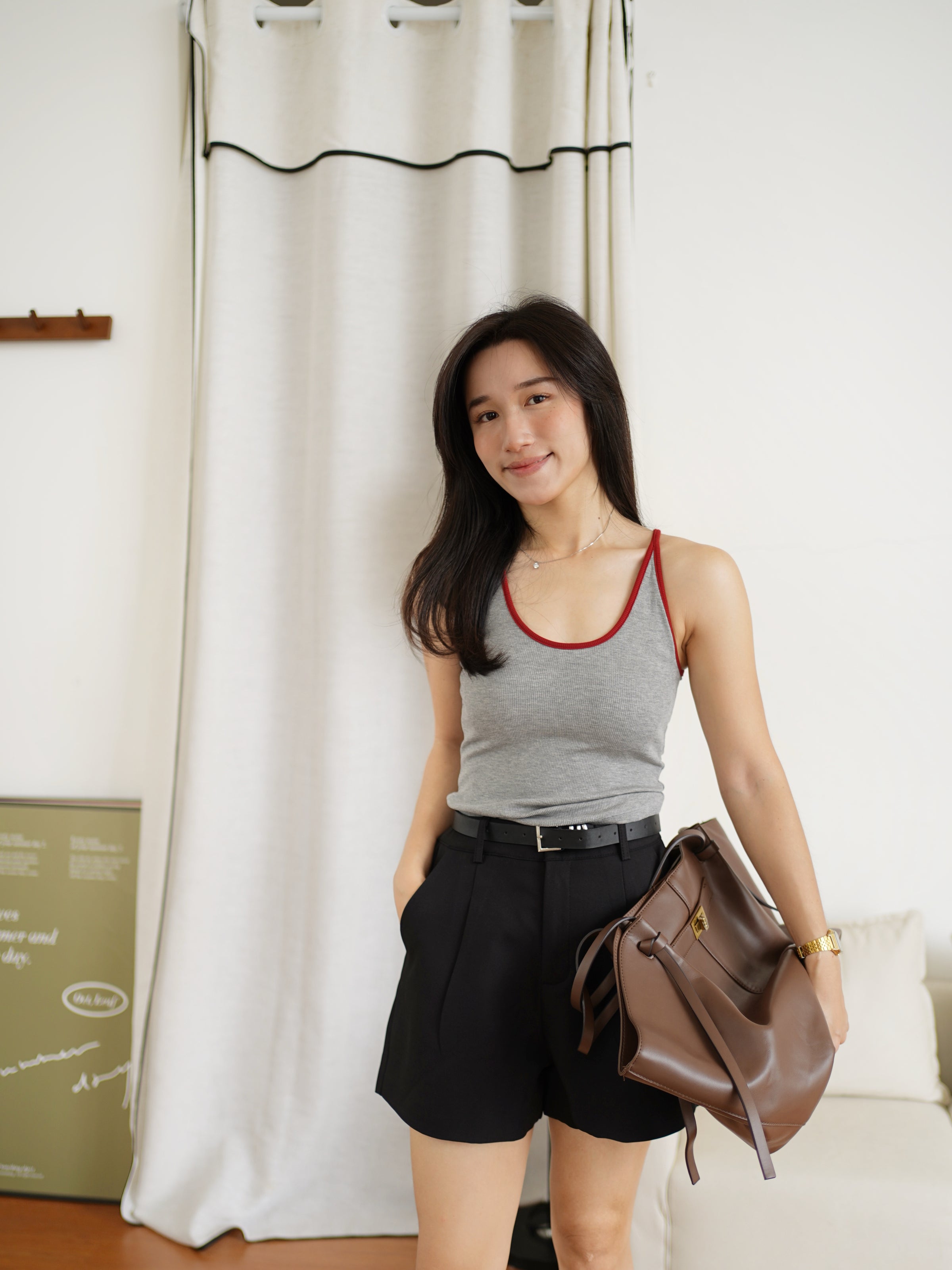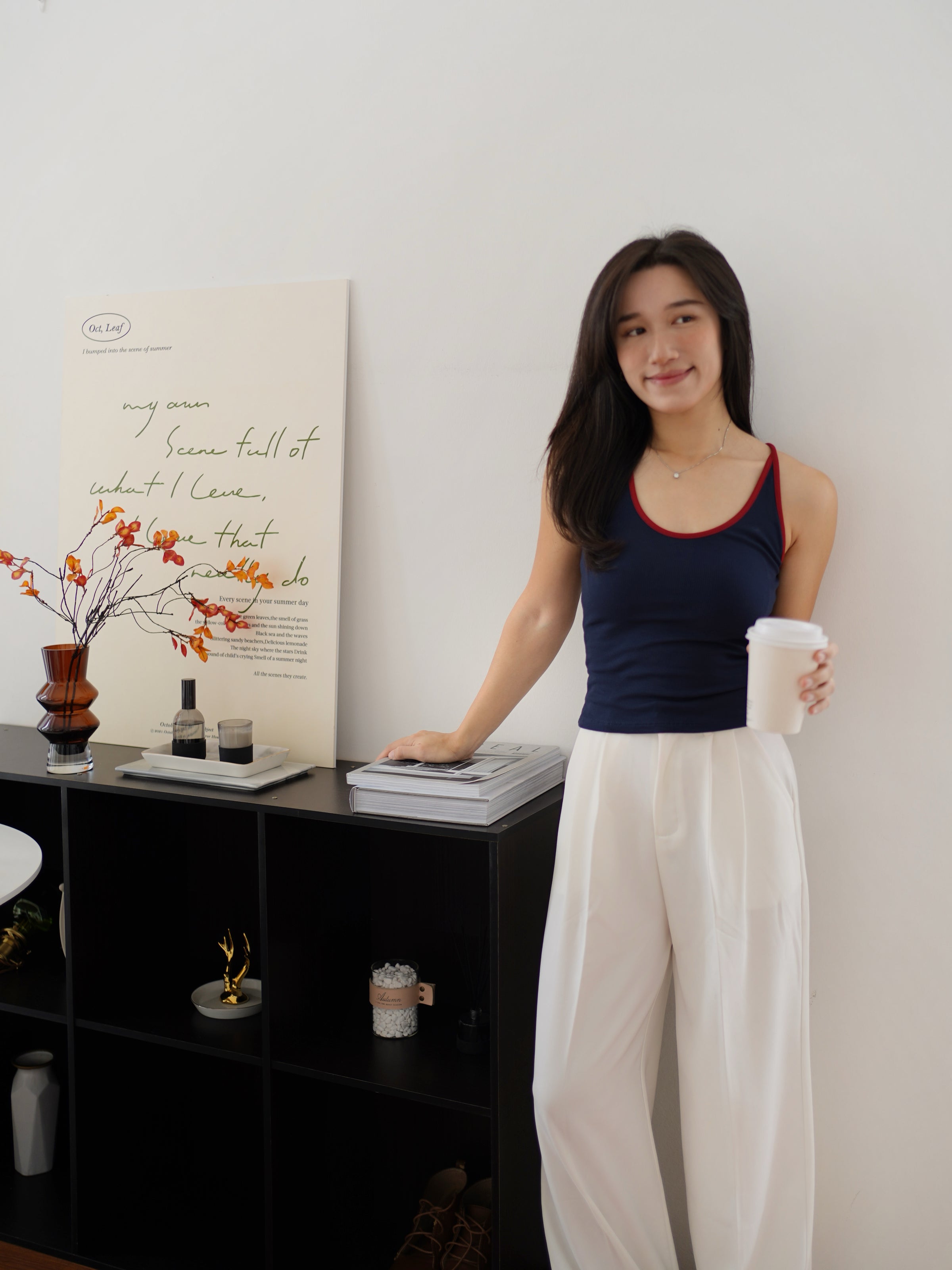 Turn heads with this contrast-trim racer tank — a comfy, stretchy essential that hugs your shape just right. Its bold neckline adds a flirty pop of color, making even the simplest outfit look effortlessly stylish. Perfect for casual days, cute dates, or layering up — this top is your new wear-on-repeat fave.