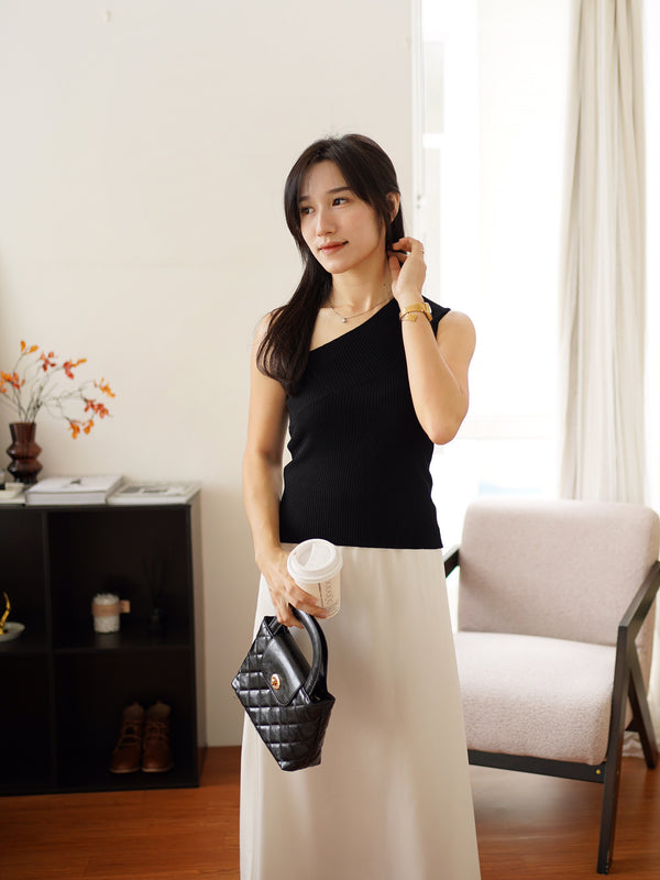 Katrina Satin Silk Cowl Dress (One piece layered-look dress)