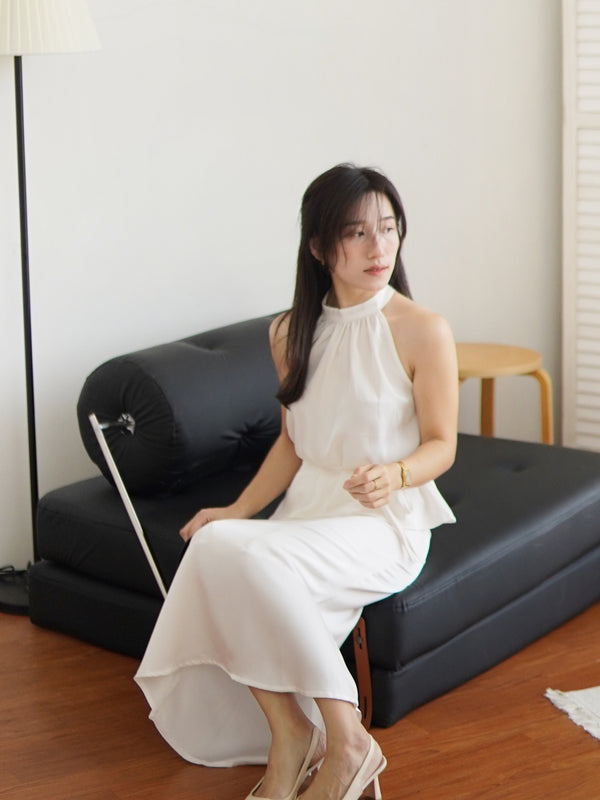 Katrina Satin Silk Cowl Dress (One piece layered-look dress)