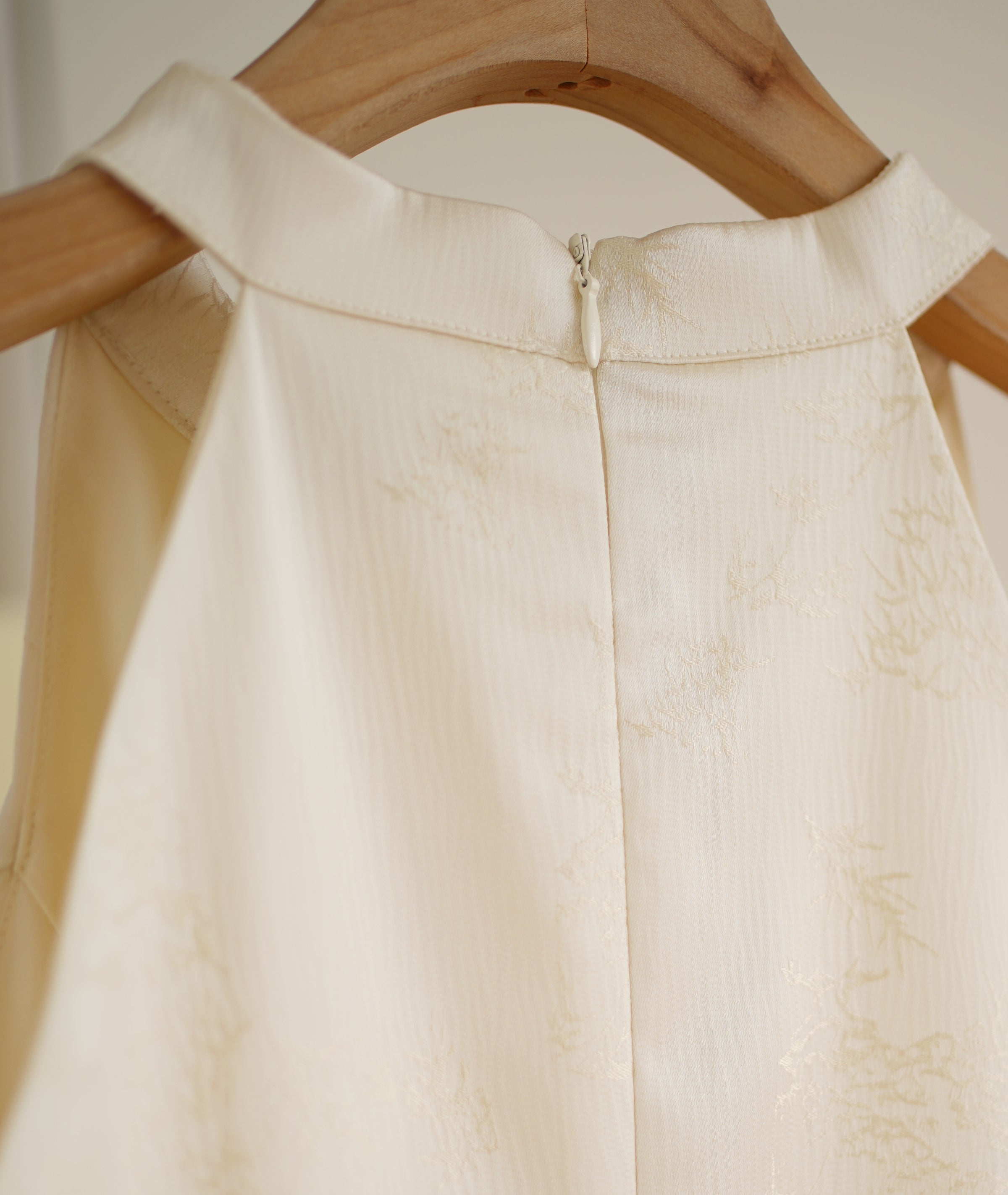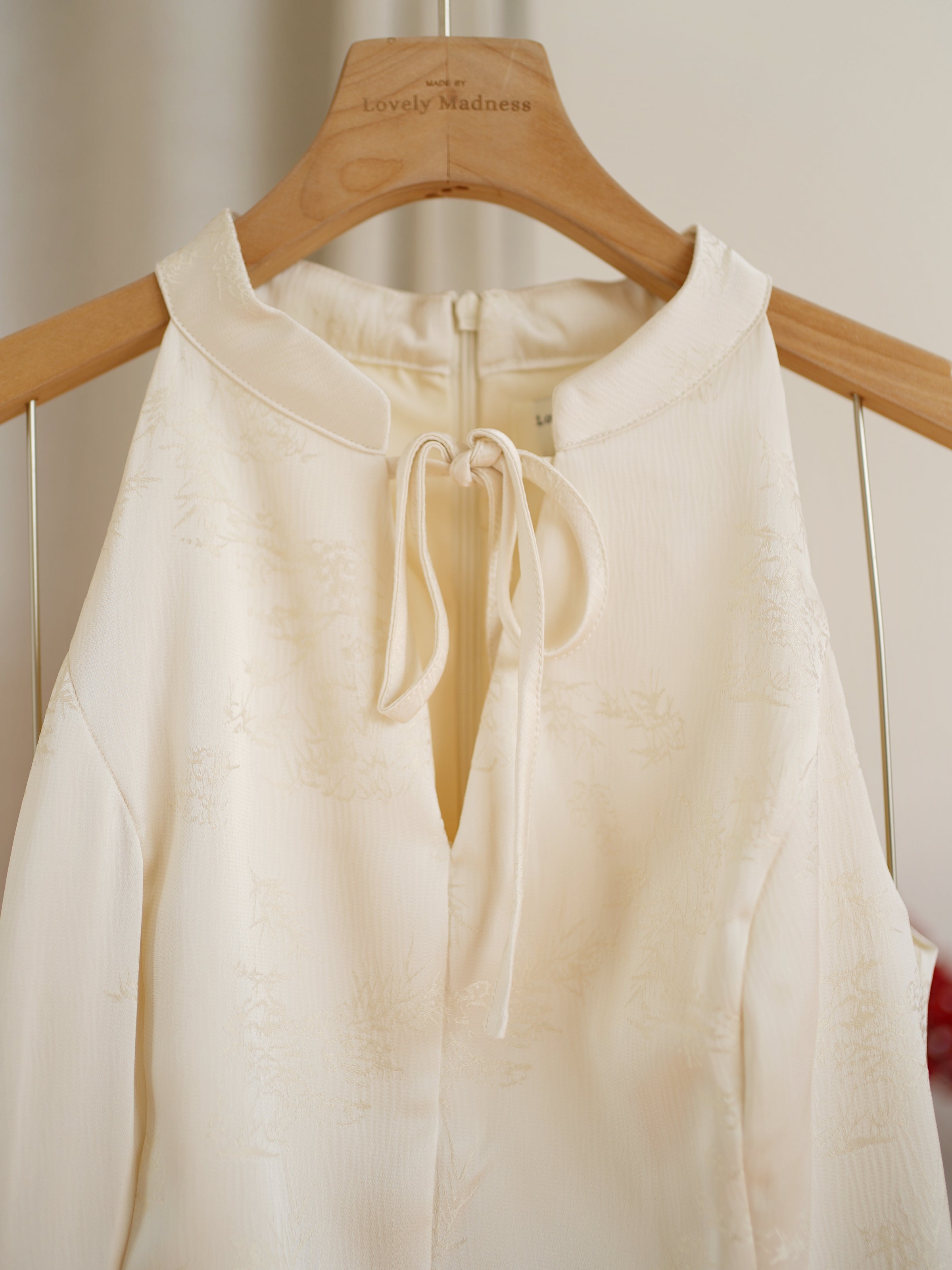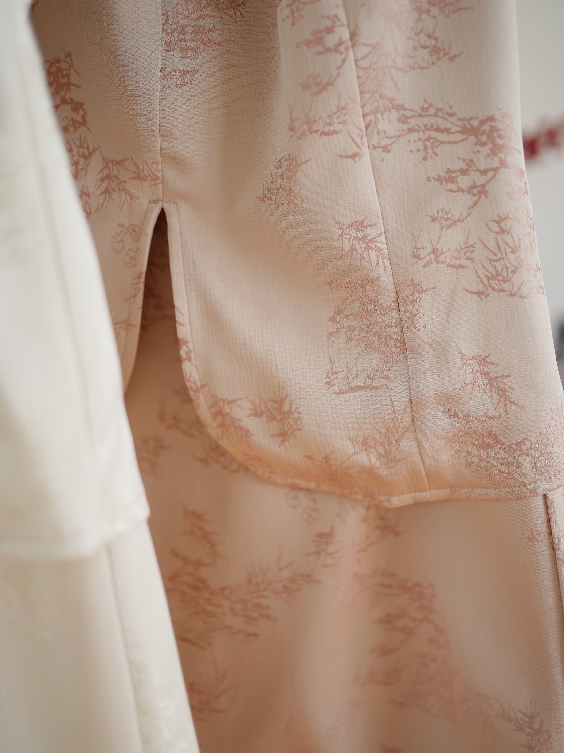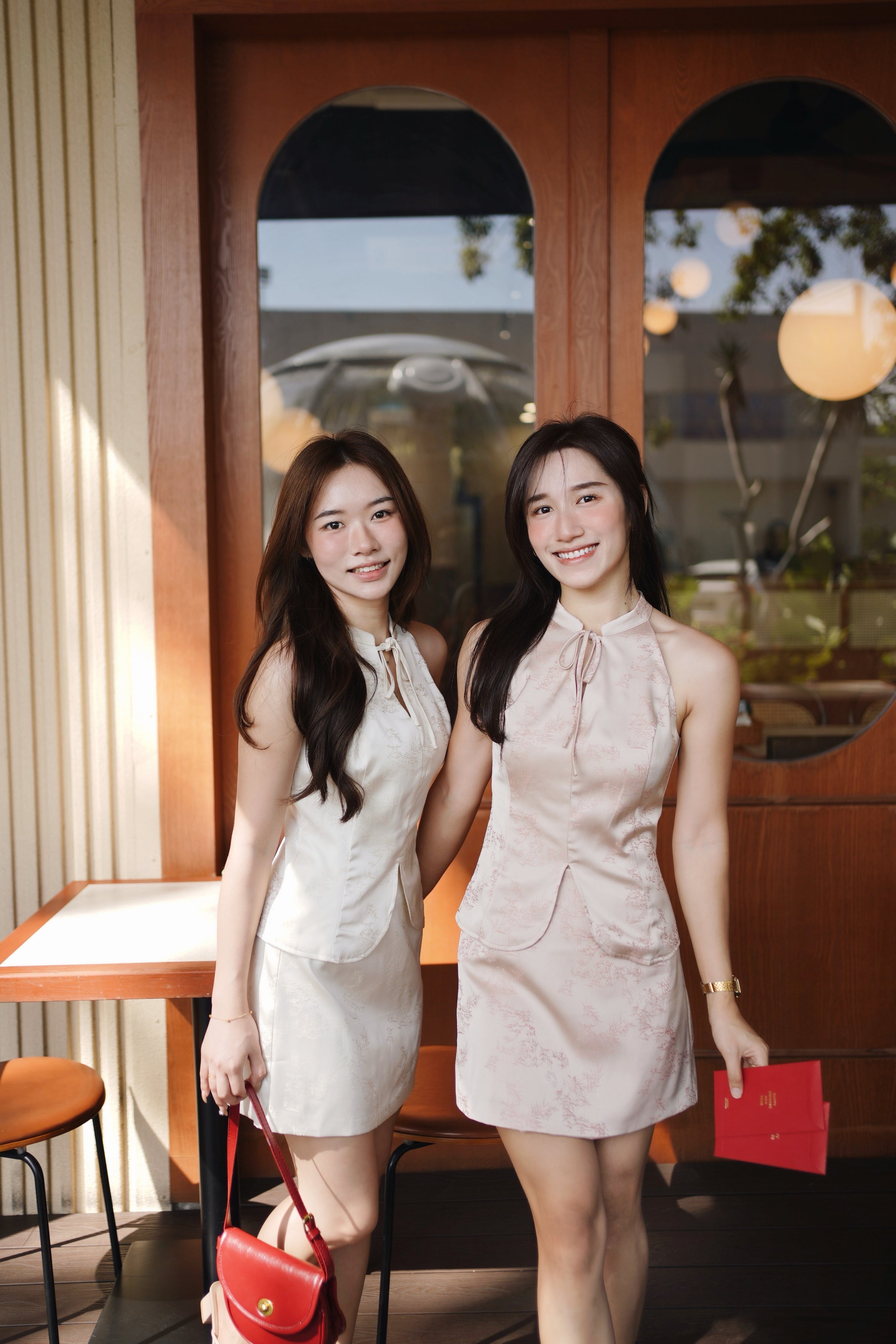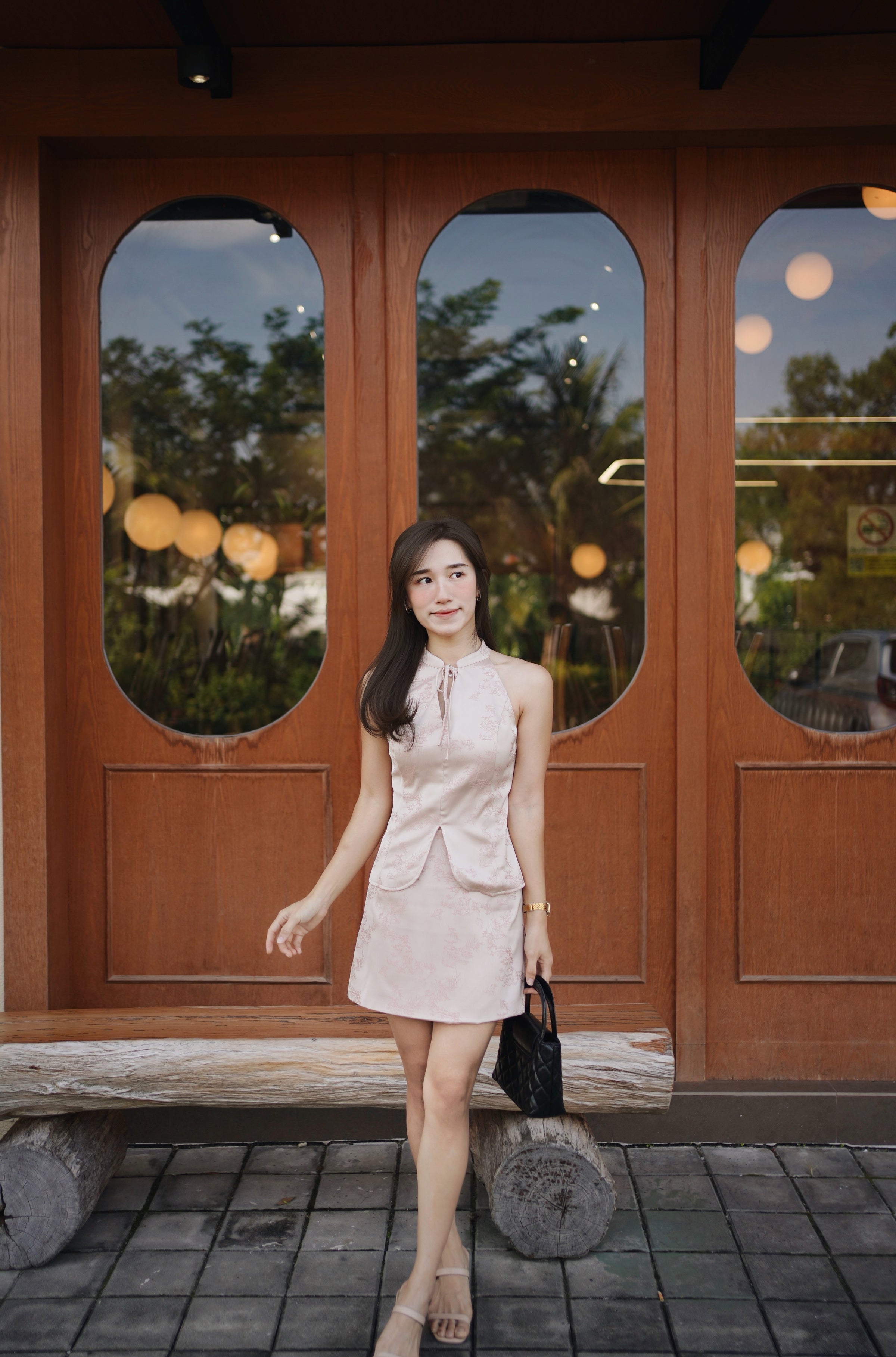 Rou En Set is a refined two-piece ensemble inspired by modern cheongsam elegance. Featuring a sleeveless mandarin-collar top with delicate floral texture and a matching mini skirt, this set flatters the silhouette with a soft, feminine structure. Elegant yet daring, Rou En is perfect for festive occasions, date nights, or elevated everyday wear—timeless charm with a confident modern twist.