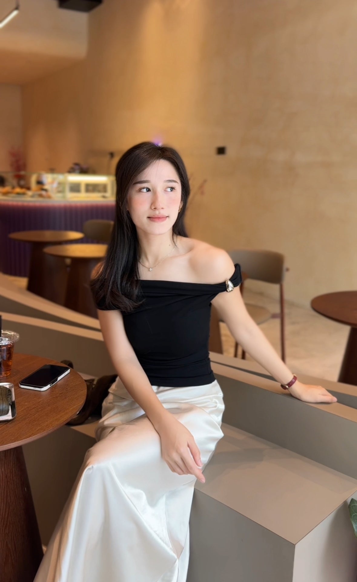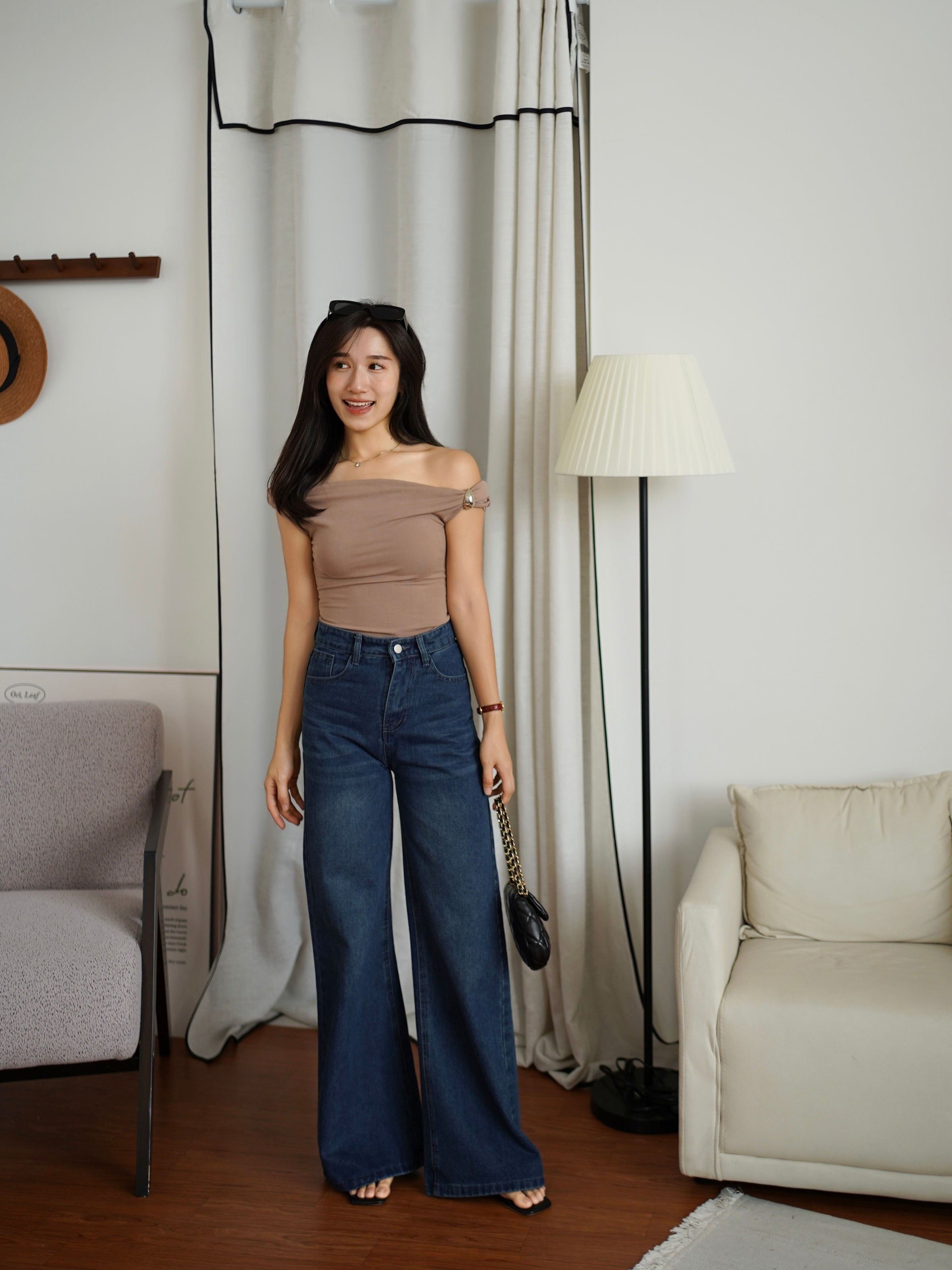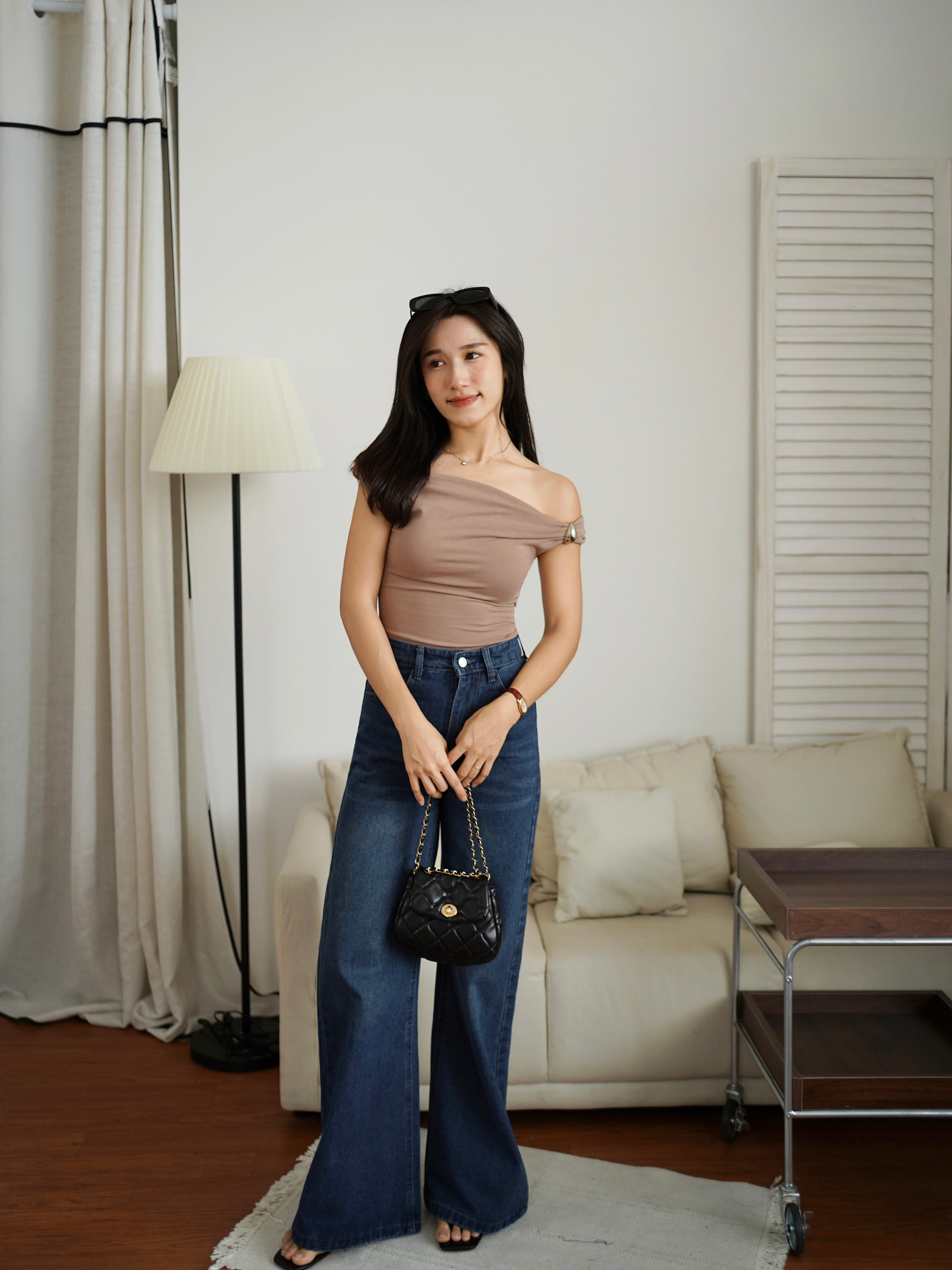Turn heads in this sleek one-shoulder top featuring a stylish metallic accent detail. The draped silhouette creates a flattering, modern look that’s both cute and daring—perfect for nights out or elevated casual outfits.