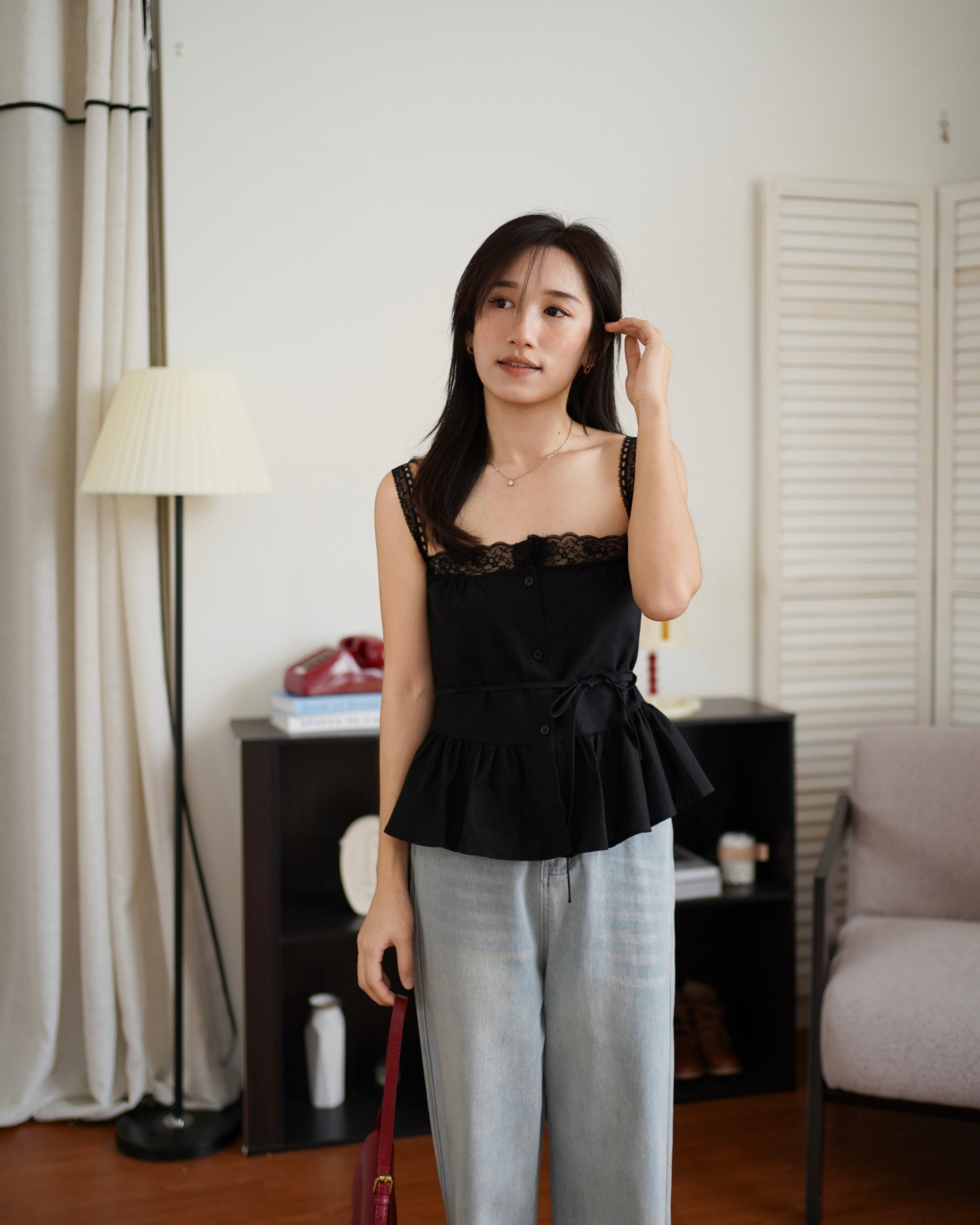 This lace trim peplum cami top is the perfect mix of sweet and daring. Designed with delicate lace straps, a flattering square neckline, and a softly flared peplum hem, it cinches the waist and enhances your silhouette effortlessly. The lightweight, breathable fabric makes it ideal for summer outfits, date nights, or chic everyday styling. Available in classic cream and bold black, this feminine peplum top pairs beautifully with wide-leg pants or denim for a trendy, elegant look that turns heads without trying too hard.