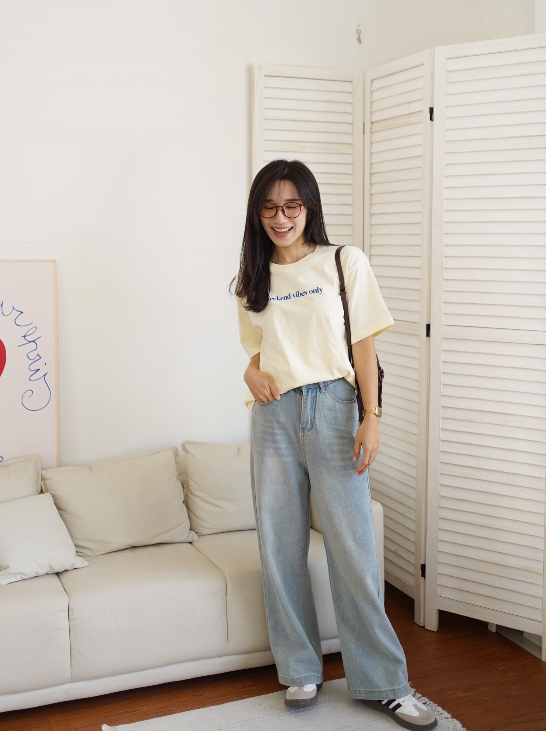 The Weekend Club Tee is made for lazy mornings and café catch-ups ☕✨ Featuring the quote “Weekend vibes only” on the front and a chic retro back print, this tee gives off effortless off-duty charm. Soft cotton, relaxed fit, and that cool-girl energy — your must-have for every casual day 💚💛
