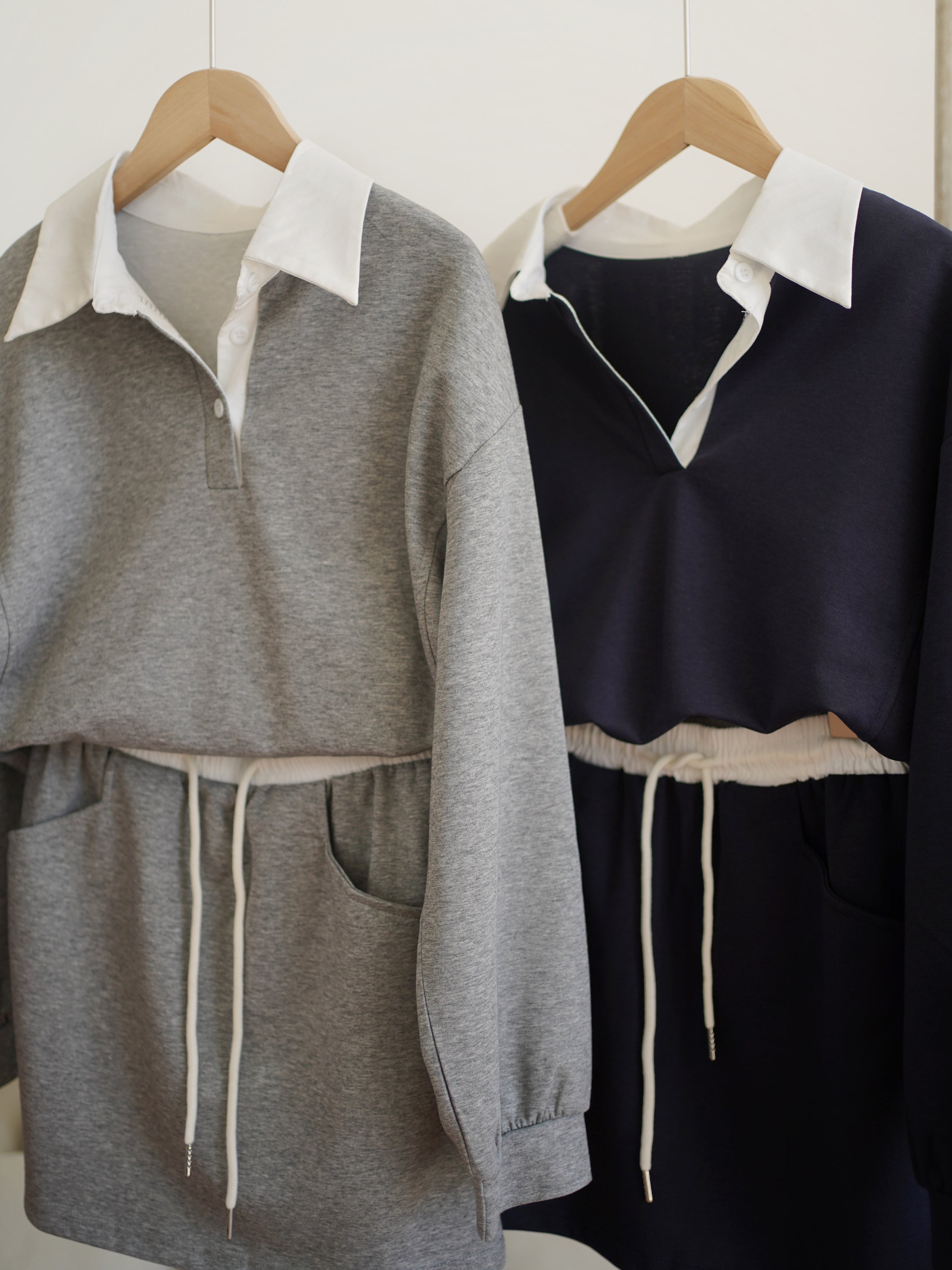 The Polo Sweater Sporty Set gives you that effortless “smart casual girl” vibe 🍎 Featuring a collared pullover with a contrast white inner layer and a matching mini skirt with pockets — it’s cozy yet chic, playful yet polished. Perfect for café dates, weekend strolls, or campus looks. Style it with loafers and socks for the ultimate preppy charm ✨