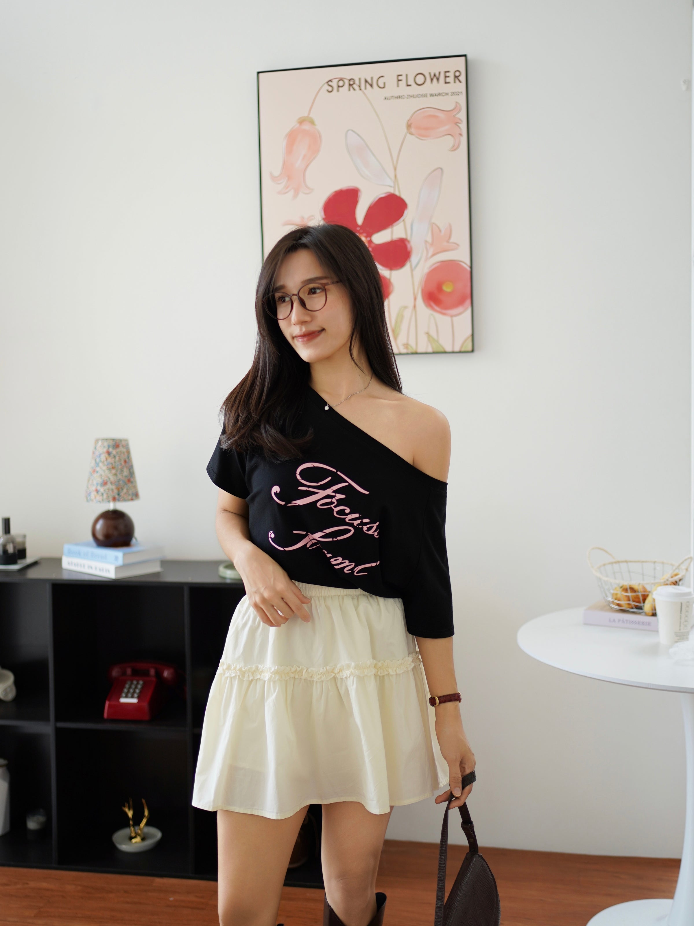 A playful off-shoulder graphic tee that brings effortless cool to your everyday style. Made from soft, breathable fabric with a relaxed fit, this cute statement top adds a daring touch to casual outfits while keeping you comfy all day.