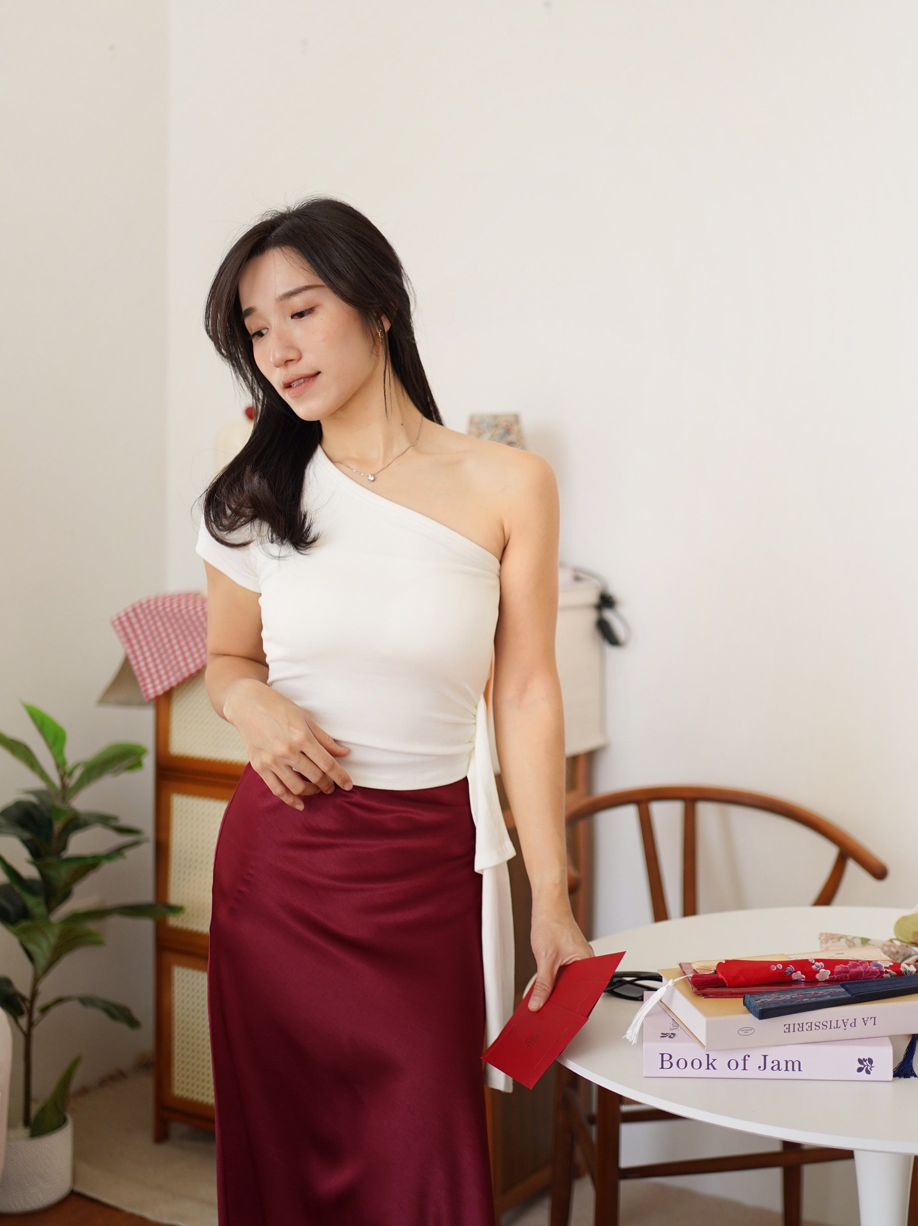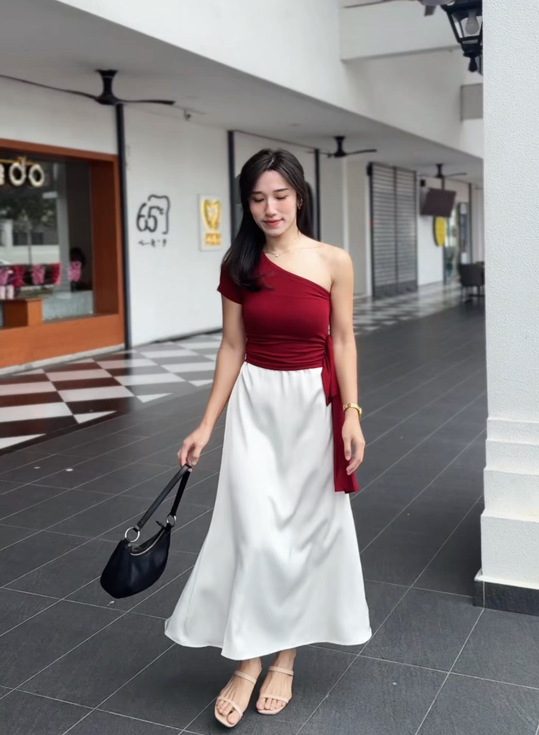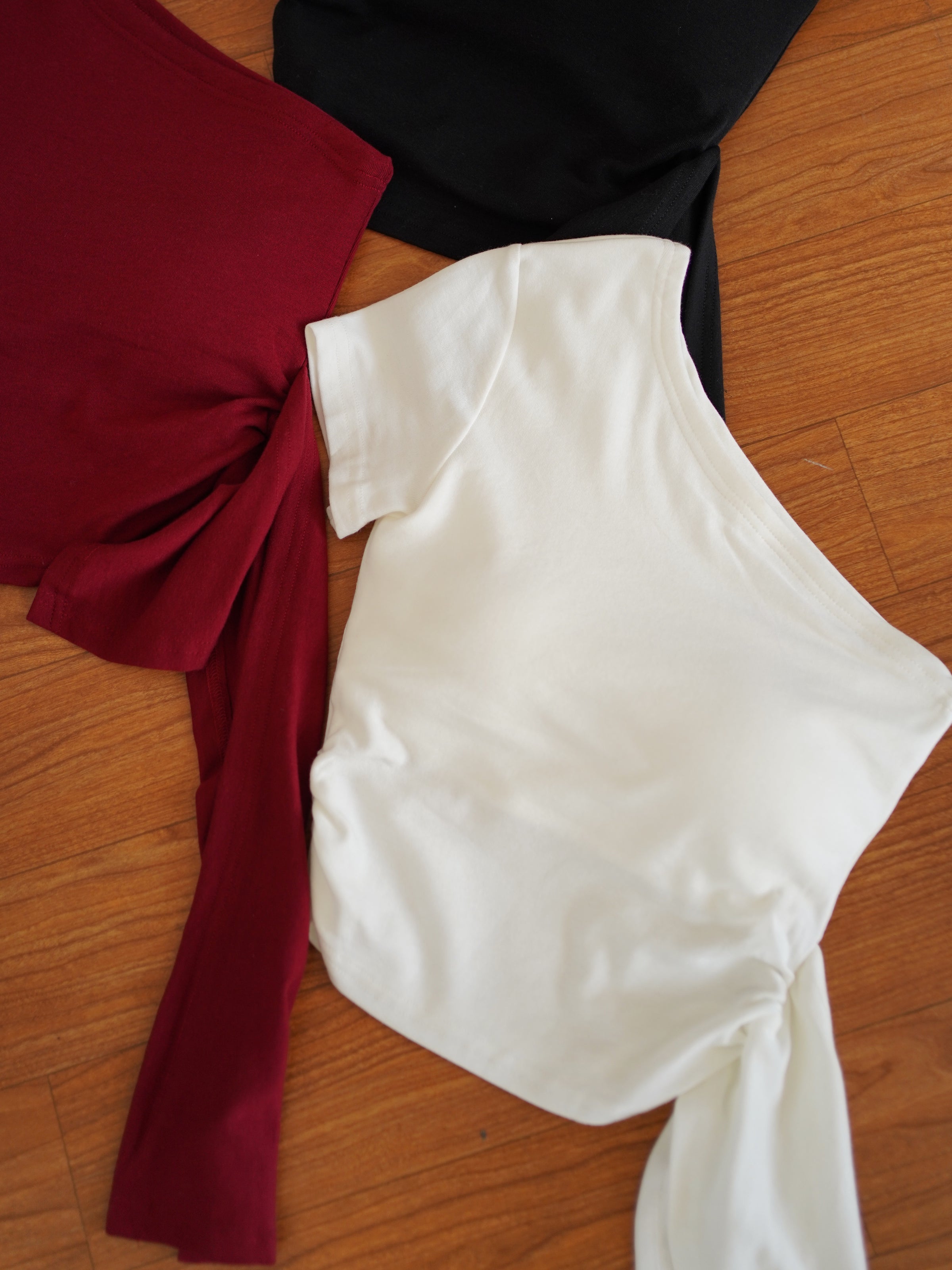 Elevate your everyday wardrobe with this modern one-shoulder asymmetrical top, designed to flatter with clean lines and a sculpted silhouette. Crafted from a soft, stretchy fabric, this fitted top features a unique diagonal neckline and subtle side ruching that enhances shape while offering all-day comfort.